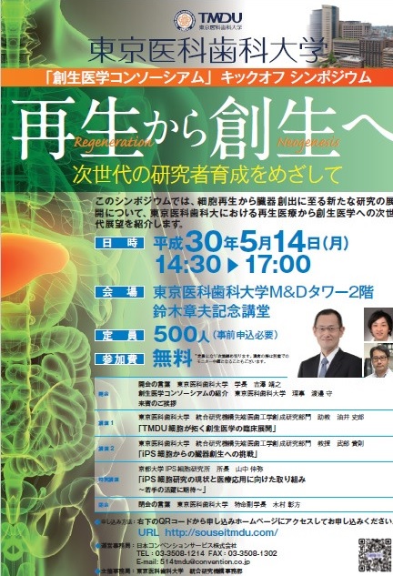 先週は東京医科歯科大学で開催された創生医学コンソーシアムキックオフシンポジウム「再生から創生へ~次世代の研究者育成をめざして」を聴講する機会に恵まれた。