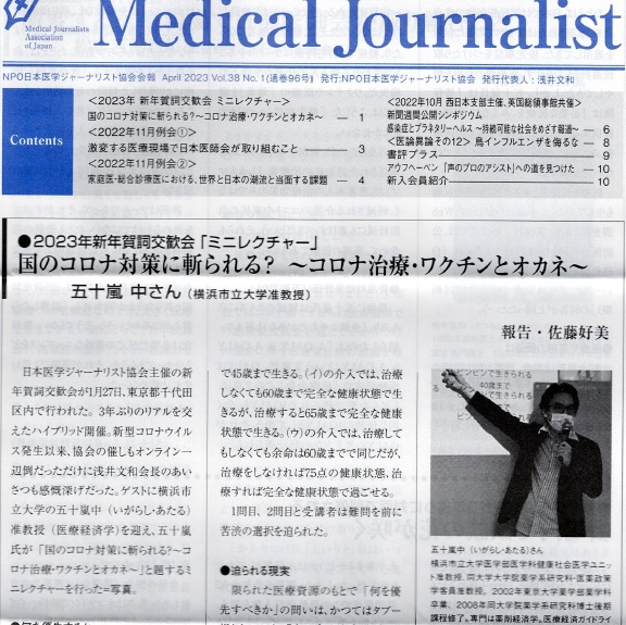 堂上が所属する日本医学ジャーナリスト協会の会報最新刊が配布中。