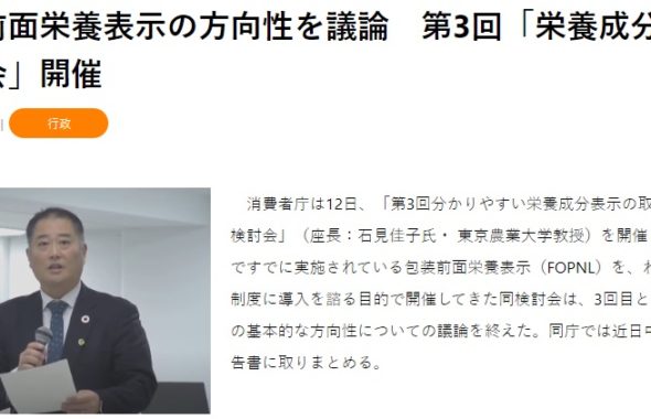 食品の包装前面栄養表示(FOPNL)に関する検討会を取材しました